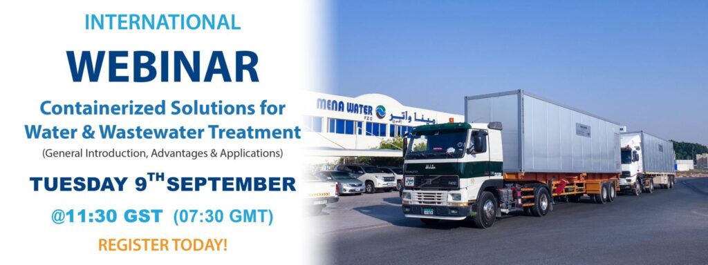MENA-Water cordially invites you to the “Containerized Solutions for Water and Wastewater Treatment” webinar on Tuesday 9th of September 2025. Our specialists will talk about general introduction, field of applications, products features, advantages as well as latest updates in different sectors. You will learn about different kinds of package plant solutions and its applications in drinking water, wastewater and sludge treatment.